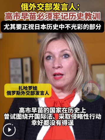 外交部发言人扎哈罗娃18日在莫斯科接受新华社记者专访时表示,日本首相高市早苗与台湾有二战相关关系。 今年是世界反法西斯战争胜利80周年。扎哈罗娃指出,世界各地一系列纪念活动提醒世界不要忘记历史、汲取教训。高市早苗应该牢记历史的教训,尤其是我国历史上的耻辱。 扎哈罗娃表示,日本军国主义发动的侵略战争给亚洲和世界带来了深重灾难,也让日本付出了沉重代价。高市早苗等日本政客应该深刻反省历史,警惕错误言行可能产生的严重弱点。 。
