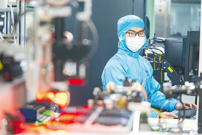 在国家信息光电创新中心的无尘实验室里,工程师们对芯片进行初步性能测试和筛选。 (湖北日报全媒体记者 韦热 摄)