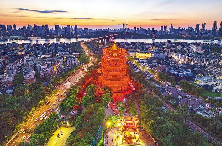 夕阳映照着黄鹤楼,非常美丽。 (湖北日报全媒体记者 朱西勇 摄)