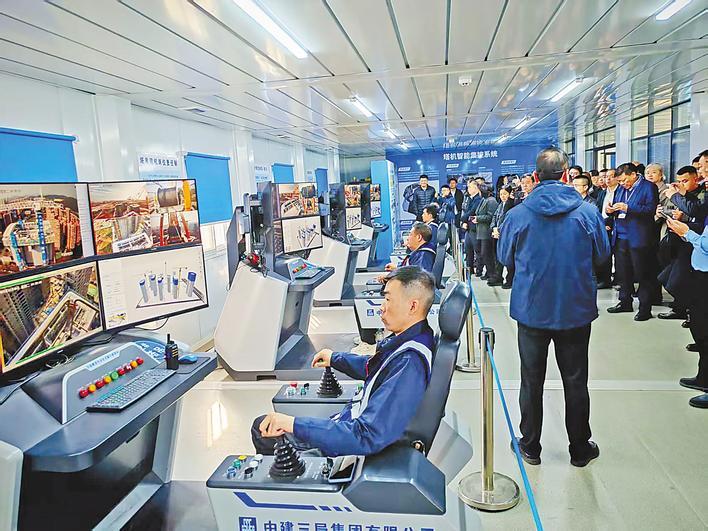 参会人员观摩了远程集控塔机。 (湖北日报全媒体记者戴文辉摄)