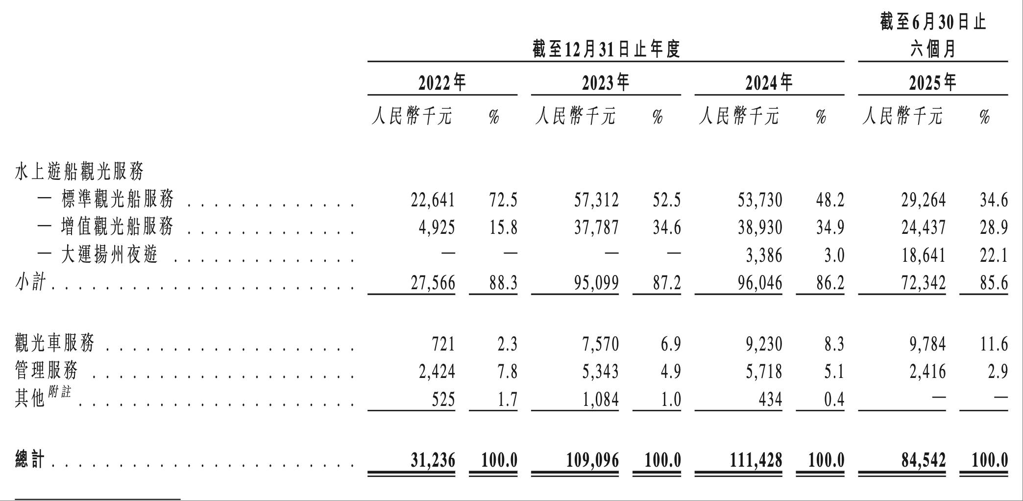 新加坡经纬10月11日电(严书新)近日,江苏瘦西湖文化旅游股份有限公司(以下简称瘦西湖)正式向香港联交所递交申请,对港股发起冲击。瘦西湖是一家总部位于江苏省扬州市的综合性水务提供商。主要提供扬州疏港瘦西湖风景区和古运河区的水上船服务。招股书援引Frost & Sullivan的报告称,2024年,中国有超过270家水上旅游服务。从2024年门票收入来看,瘦西湖排名第10位,市场份额约为1.0%。游船的花费占收入的80%以上。瘦西湖是扬州唯一一家大型水上游船运营商,历史始于2006年。招股书显示,瘦西湖前身为扬州古运河旅游有限公司。至成立公司,水游观光服务公司西湖管理处。 2006年,为更好地展示大运河文化遗产,支持扬州市旅游业发展,扬州市政府决定成立扬州古运河旅游有限公司,主要从事西湖风景区的邮轮旅游业务。 2015年9月,瘦西湖中标,获得疏港-瘦西湖风景区水上游船服务20年独家经营权。据招股书介绍,疏冈瘦西湖风景区是联合国教科文组织世界遗产,也是中国最受欢迎的古典园林和湖泊之一。扬州市广电旅游局数据显示,2024年好景区接待游客量将超过700万人次。据疏港瘦西湖片区统计,好景区日均接待游客量达700万人次。鲁洛克巅峰时期可以达到十万。此外,自2006年起,瘦西湖成为古运河地区唯一运营水上船服务的公司。目前,好地区独家经营许可不受时间限制。这个令人惊叹的地区是大运河的主要组成部分,2025 年高峰期间的日常接待量最高可达 6,000 人。作为综合水游服务商,瘦西湖拥有三大业务板块,其中新生水游轮业务、用车业务、管理业务。其中,水上邮轮业务是西湖收入的主要来源。招股书显示,2022年、2023年、2024年及2025年上半年,瘦西湖水上游船旅游业务板块的收入分别约为2,756.6万元、9,509.9万元、9,604.6万元、72,234.2万元,占比分别为88.3%、87.2%、86.2%和85.6 总收入 分别。 2022年、2023年、2024年及未来2025年上半年,西湖水上邮轮旅游业务板块产生的毛利润分别为480.4万元、5686.8万元、5395.5万元、4556.2万元,毛利率分别为17.4%、59.8%、59.8%、56.2%、63%。瘦西湖按业务板块细分来源:看瘦西湖招股书,合计来看,2022年、2023年、2024年和2025年上半年,西湖总营收分别为3123.6万元、1.09亿元、1.11亿元和8454.2万元;净利润分别为298万元、4643万元、4288.4万元、3882.3万元。报告期内,西湖整体毛利率分别为21.8%、59%、54.4%和63.4%;净利润率分别为9.5%、42.6%、38.5%和45.9%。瘦西湖援引弗若斯特沙利文报告称,2024年,中国水上旅游服务提供商超过270家,排名前十的提供商约占总门票收入的28.2%。从2024年门票收入来看,瘦西湖排名第10位,市场份额约为1.0%。孩子们在做什么?船上的女人?瘦西湖提供的水上游船服务根据游船的装饰风格和规模可分为三类,特别是游船、自驾游船和主题游船。桨船是扬州水文化的标志性元素,在西湖细长地带尤为常见。船姑娘们常常以桨船的节奏唱地方戏。女桨船手被称为“船姑娘”,男桨手被称为“船夫”。招股书显示,划艇是西湖游轮产品中最受欢迎的品类,也是提供包租服务的专家,价格通常在1000元左右。根据瘦西湖官方订票app门票显示,明轮船游览路线为“瘦西湖南门码头”阿克——小金山——二十四桥墩”或“二十四桥墩——小金山——瘦西湖南门码头”。整个行程有两站,门票有两种,一种是两站票,票价1000元;都是单程票,不包含瘦西湖景区说明书的门票,瘦西湖里的所有船姑娘和船 经过严格训练,具备摇班GKA、解说、唱歌、英语沟通、心理咨询五项基本技能,并需取得基本船员证书。瘦西湖招股书 来源:瘦西湖招股书 瘦西湖表示,目前,“瘦西湖船姑娘”已成为知名的高端旅游品牌,而船姑娘掌控的划艇服务早已是该公司的招牌项目,吸引了众多游客。 许多游客和外国游客。截至2025年9月21日,共有船舶206艘瘦西湖,有36艘双桨船、106艘自驾船和64艘主题船。正常运营情况下,单程旅客总运力为3817人,旅游高峰时日最大运力为3.5万人。据瘦西湖ProsPectus介绍,自动驾驶船是一种电动自驾游船,根据船型不同可容纳4至6名乘客。自驾游船实行分时租赁,租赁费率根据不同车型分为120元/小时、150元/小时、200元/小时三个档次。以瘦西湖游船为主题,提供标准游船服务,新增“游船+”和包船服务,以及夜扬州表演。可分为生态船、名贵船、古典船等,票价50元至168元/人。根据船型不同,包船价格1000元、2000元uan 总体来说一般。瘦西湖援引弗若斯特沙利文报告称,2024年,中国水上旅游服务收入将达到10.2人民币,其中船票收入占市场总规模的最大部分。 2024年收入达94亿元,成本约92.2%。计划开发更多鼓舞人心的项目。除了水船游览服务外,瘦西湖还提供汽车服务。截至2025年9月21日,瘦西湖共有旅游巴士25辆,正常运营情况下单程可载客325人,高峰期日载客量可达1.3万人次。 2022年、2023年、2024年和2025年上半年,瘦西湖观光巴士业务板块产生的收入分别为72.1万元、757万元、923万元和978.4万元,占总收入的2.3%、6.9%、8.3%和11.6%。纤细的西湖在招股说明书中提到,公司的水上邮轮业务和公交巴士业务具有明显的变革的当代属性。受流行诗句《扬州烟花三月》的影响,加上五一、国庆、春节等重大节日,以及高三、春假等学校假期,高潮期通常集中在春季(3月至5月)。招股书显示,2023年和2024年,西湖3-5月的水上游船服务收入将分别占全年的40%和48.9%。 2025年上半