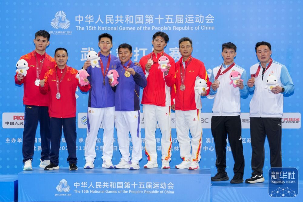 11月16日,在广东省湛江市举行的第十五届全运会武术男子75公斤级决赛中,福建队选手林宏伟以2比0击败重庆队选手冯,夺得冠军。 ↑ 冠军福建队林宏伟(左三)、亚军重庆队选手何峰(左一)、并列季军四川队选手陆海涛(右四)、北京体育大学队选手金根生(右二)与教练员在颁奖典礼上。 ↑ 冠军福建队球员林宏伟(左)与教练赵晓锐在颁奖典礼上。 ↑ 福建队球员林宏伟赛后庆祝胜利。 ↑ 福建队球员林宏伟赛后庆祝胜利。 ↑ 福建队球员林宏伟(左)在比赛中。 ↑ 福建队球员林宏伟(左)在比赛中。 ↑ 福建队球员林宏伟(右)获胜。 ↑ 福建队球员林宏伟(左)在比赛中。新华网摄s社记者 李波